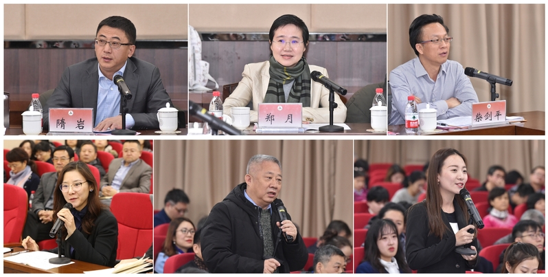 随后,教师代表隋岩、郑月、柴剑平、刘卓、范周和学生代表王琳分别发言,汇报学校发展变化、工作学习收获体会和思考,表达不忘初心、牢记使命的决心。