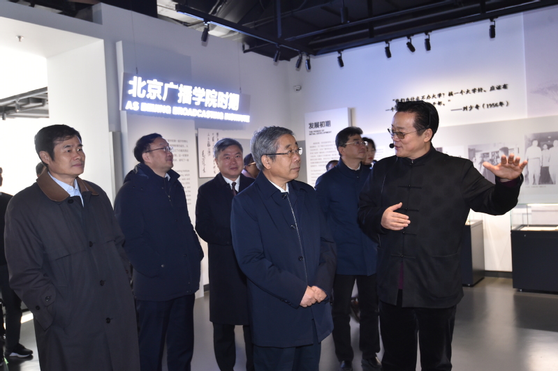在校史馆,陈宝生部长一边认真听取负责人的介绍,一边细心观看展陈,了解学校发展历史,感受学校特色文化,并饶有兴致地体验了校史馆新媒体技术的应用,对校史馆发挥传媒特色优势,充分利用新技术新手段呈现学校发展历史“活起来”的做法表示赞许。