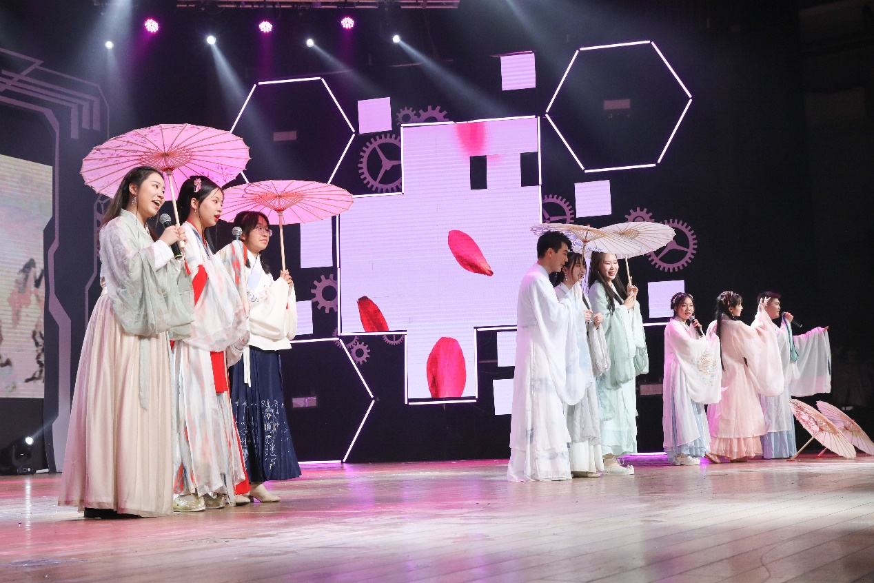 接下来的第二个篇章,DE舞社为我们带来了舞蹈表演《K-Memory》,舞蹈串烧精彩不断,扣人心弦;港澳台侨学生发展协会的方言配音节目《HMT早晨》让观众在欢乐的同时领略到语言的魅力;泠音古风乐社呈现了一首《前世今生》,身着青衣、手撑油纸伞的社员们唱着清幽的曲调,带领观众缓缓走入大宋时期浪漫又哀伤的爱情故事;白杨剧团带来情景剧《幻梦》,演员们的倾心表演带领观众体会故事背后的深意;PASSWORD街舞社的第二个节目《Dangerous Ladies》展现青春的张力,引来现场的阵阵掌声;TRY动漫社的《青柠薄荷糖》,舞者们转动身姿,潇洒而不失优美的动作扣动了观众的心房;旋律悠扬,表演动人,Musain音乐剧社的《前进之路》引起全场的情感共鸣;Amigos拉丁舞社的第二个节目《Moonlight farewell》,音乐轻柔舒缓,舞者身着一袭白衣,翩翩起舞。