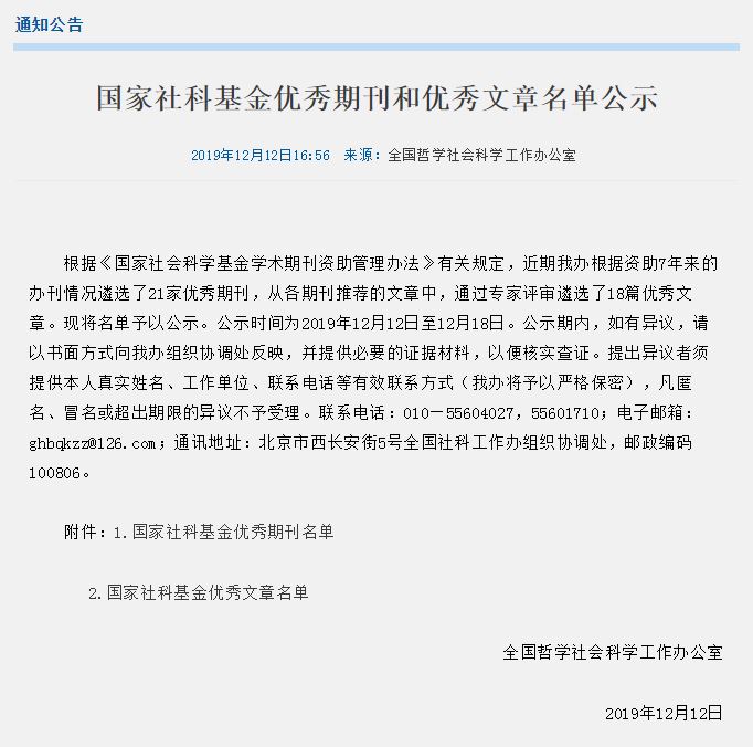 2018年,全国哲学社会科学工作办公室修改并发布了新版《国家社会科学基金学术期刊资助管理办法》。根据该办法规定,2019年9月底,全国哲学社会科学工作办公室启动了国家社科基金资助期刊评估和遴选工作。本次综合评估和遴选不同于往年的年度考核,这是全国哲学社会科学工作办公室对所有入围的国家社科基金资助期刊进行的第一次全面的综合评估和遴选。根据管理办法,以后,这项工作将每三年进行一次。