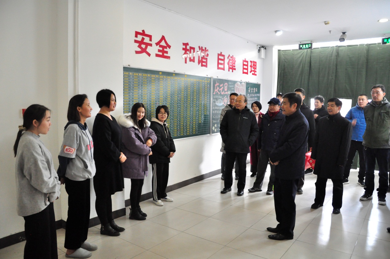 校领导先后走访了后勤服务大厅、维修部、中蓝公寓、南院锅炉房、校园安全指挥中心、东配电室、留学生公寓、保安队、校医院和北苑餐厅。每到一处,校领导都详细询问职工的工作条件、劳动强度和生活情况,还详细询问了水、电、暖的供应情况,校医院值班安排以及春节期间相关综合配套服务的落实情况,对坚守在工作一线的职工们的奉献精神予以充分肯定。此外,还要求大家一定要守好岗位,尽职尽责,对当前发生的新型冠状病毒疫情要引起足够的重视,提高值班人员的安全意识,高度重视做好疫情防控,采取必要的措施,确保节日期间学校各项工作正常运行和校园安全稳定。