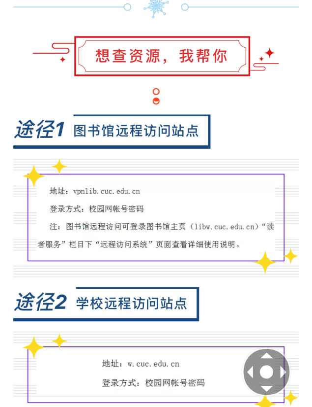 图书馆在主页发布了电子资源远程使用方法和《中国传媒大学已购电子资源说明》,帮助师生正确使用远程电子资源,并通过“中传大阅城”微信公众号推出了3期电子资源信息,引导师生通过远程方式使用图书馆电子资源。
