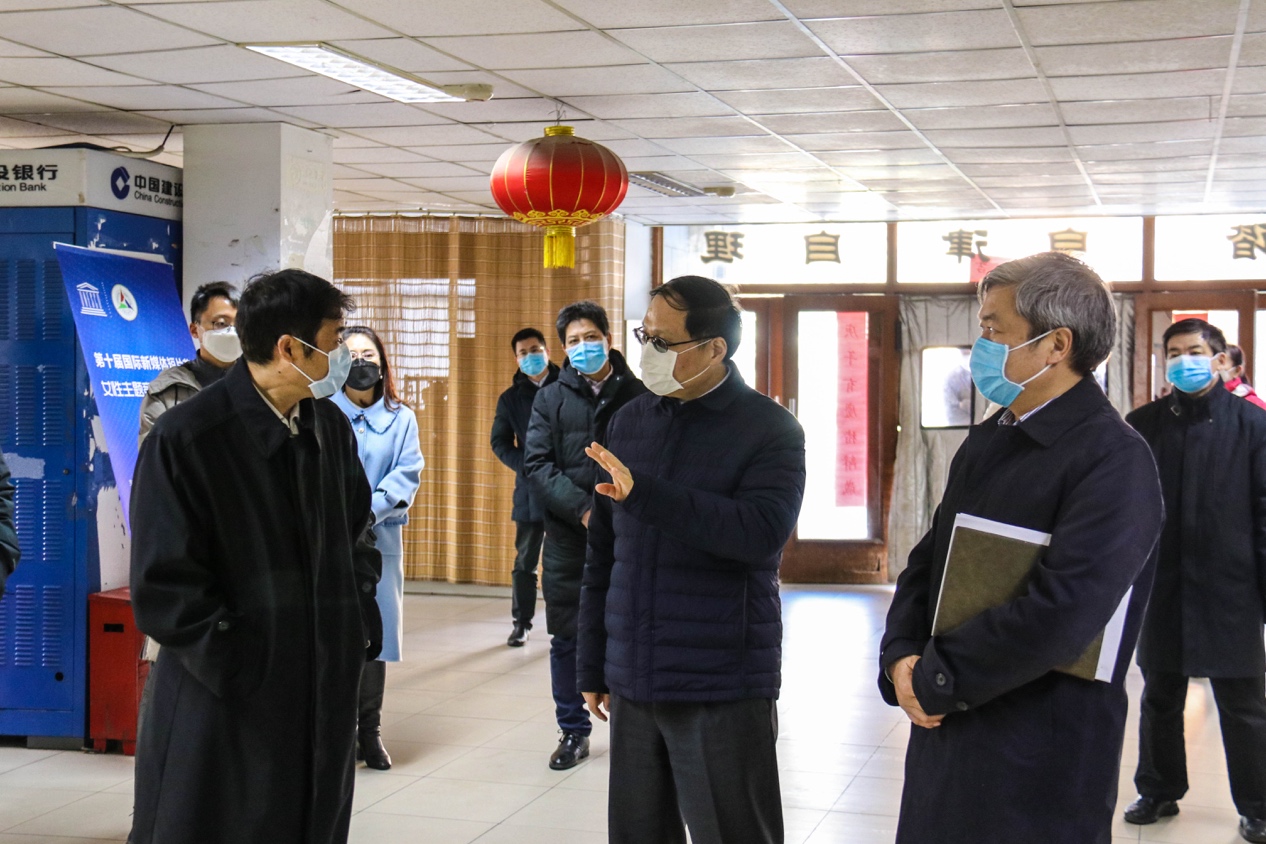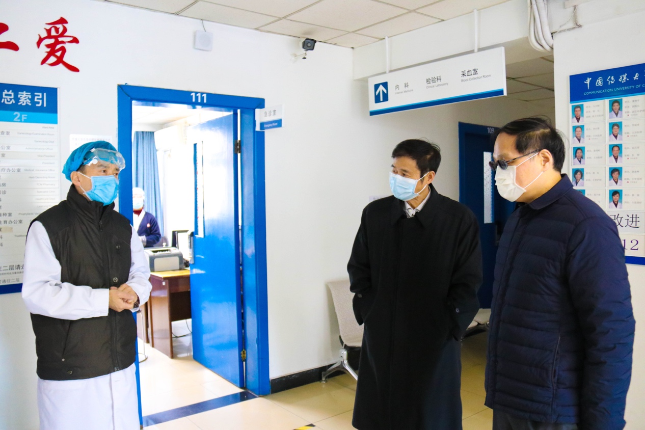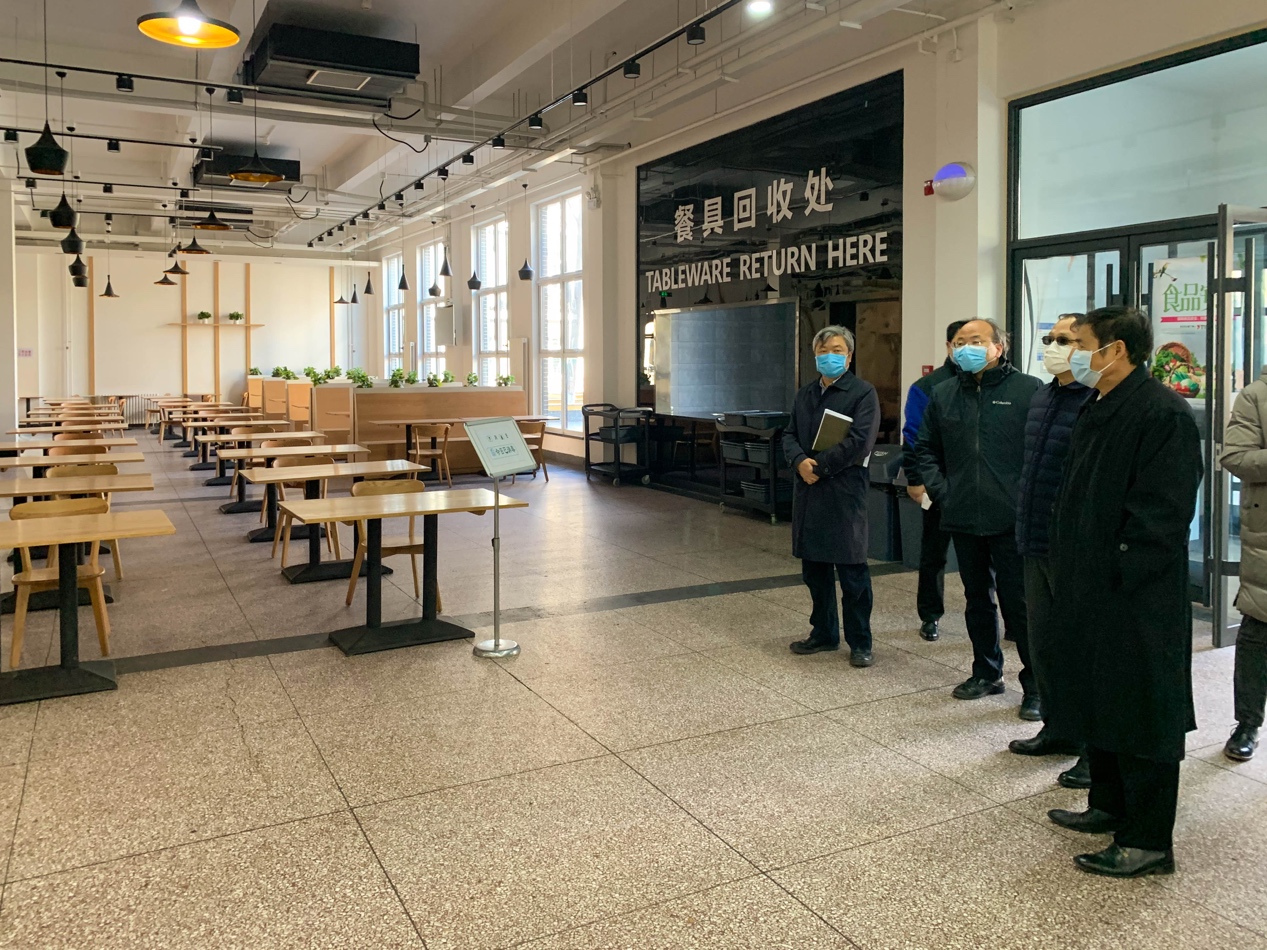 魏士强司长一行先后查看了保卫部中控室、一号楼健康观察区、中蓝大学生公寓、中传国际交流中心、校医院、食堂,听取了学校关于校门管控、隔离区设置、疫情应急处置预案、留校师生及留学生工作、校医院防疫期间接诊情况、餐食供应、物资保障等方面的工作汇报。