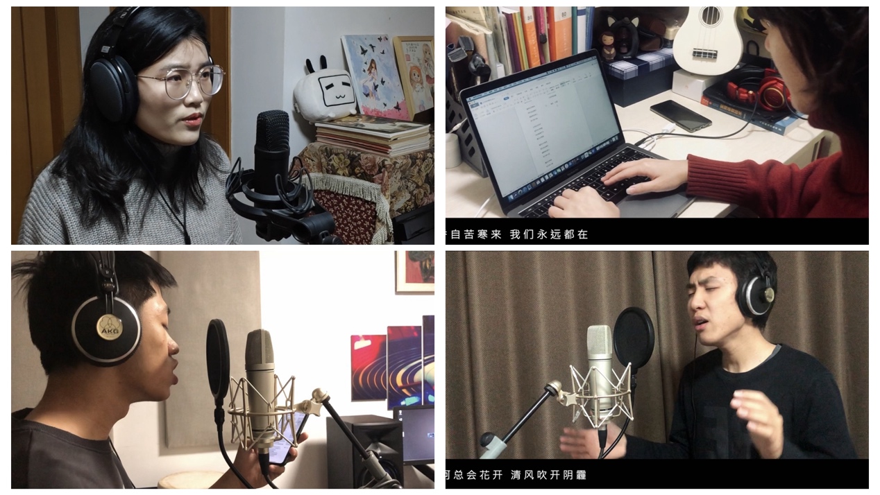 《江河花开》这首作品也是音录学子学习习近平总书记给北大援鄂医疗队全体“90后”党员回信的真诚表达。虽然不能在抗疫一线奋斗,但同学们深感当代传媒学子的责任使命与担当,积极学习回信精神,发挥专业能力以各种方式积极投入抗疫,为最终赢得战“疫”胜利贡献自己的力量。