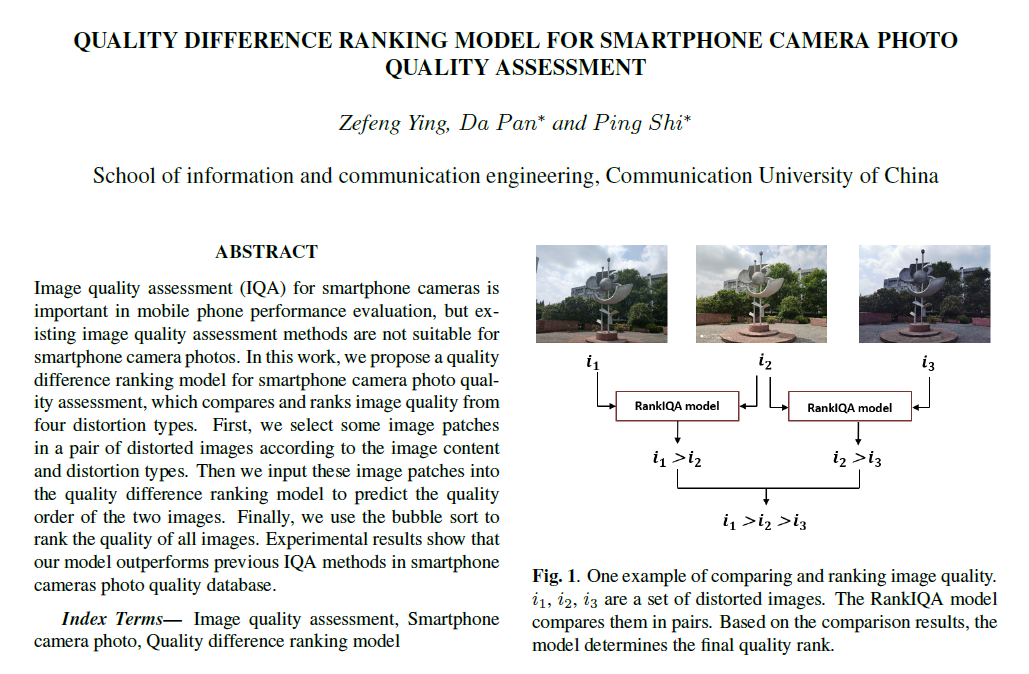 (通讯员 潘达)多媒体旗舰会议第21届IEEE国际多媒体年会(IEEE International Conference on Multimedia and Expo, ICME 2020)将于2020年7月6日在英国伦敦召开。在中国传媒大学信息与通信工程学院智能媒体计算实验室(Intelligent Media Computing Lab, IMC)史萍教授和潘达老师指导下,博士研究生应泽峰在ICME举办的“Grand Challenge on QA4Camera: Quality Assessment for Smartphone Camera”手机图像质量评价挑战赛中斩获冠军,相关论文也被ICME2020大会收录。这充分彰显了我校信息与通信工程学院在研究生培养模式改革创新上取得的显著成效,成功探索出 “以导师为核心”的研究生培养体系,保证了研究生培养质量,不断扩大科研国际化水平。