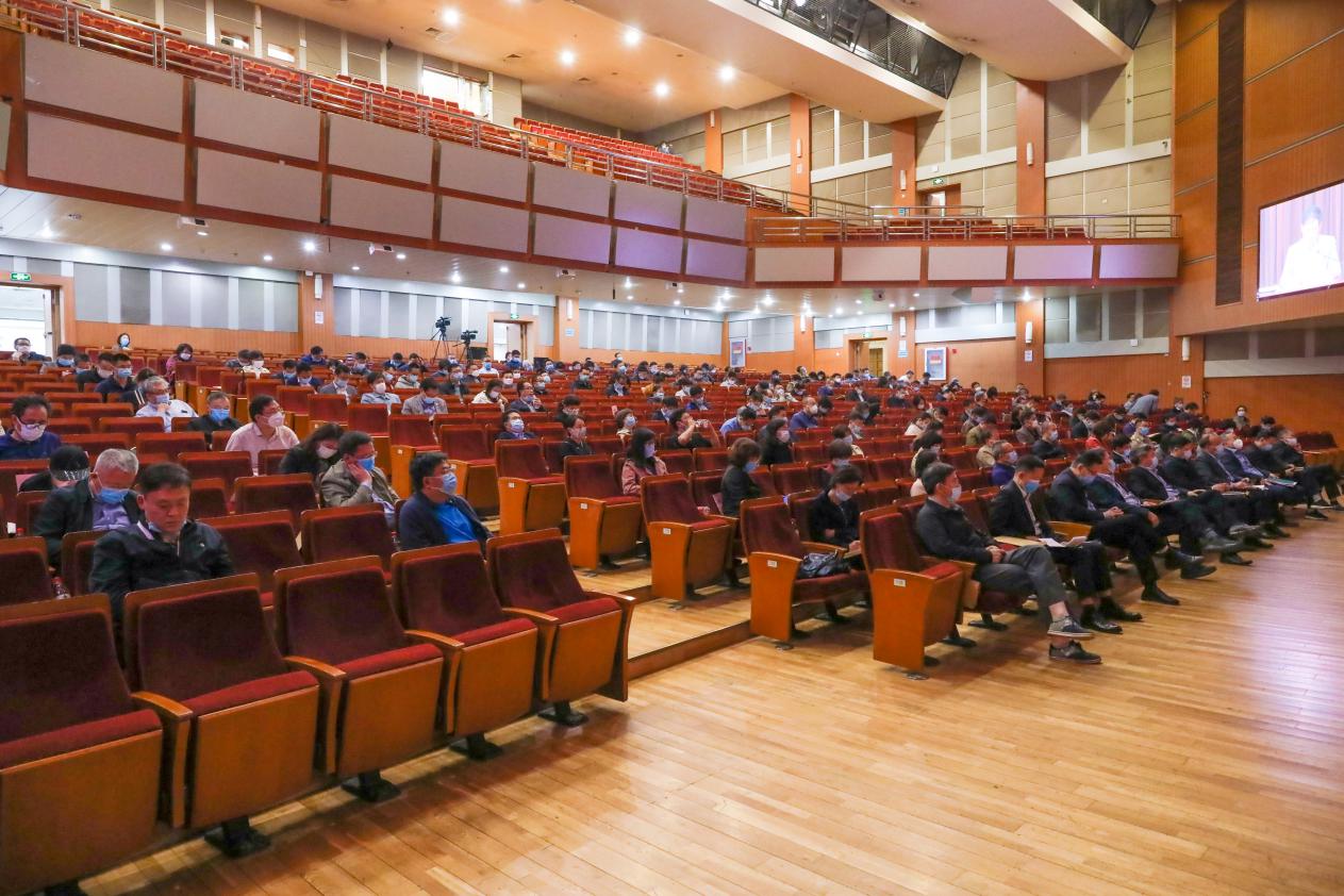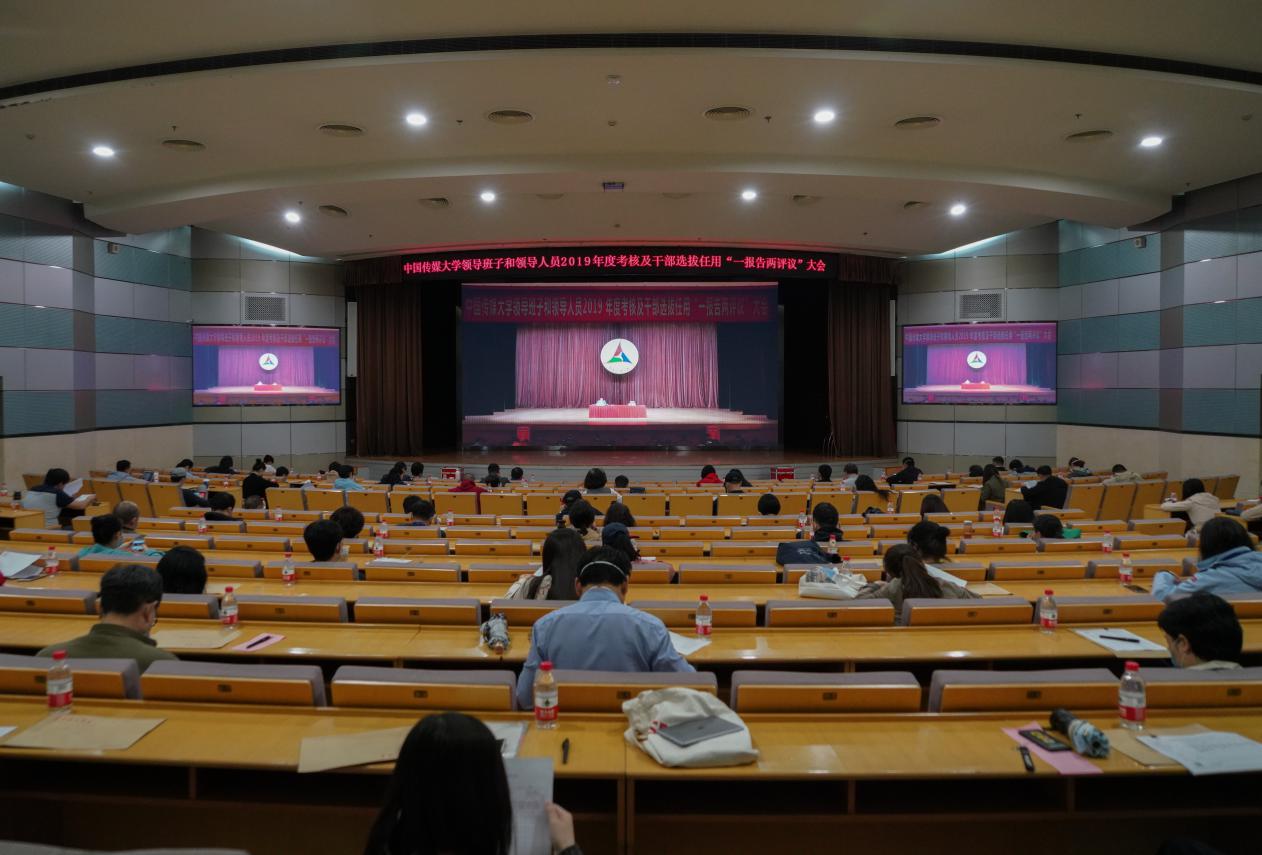 (记者 阎玺 摄影 王雷亭 宋佳音 缑宇)5月8日下午,中国传媒大学领导班子和领导人员2019年度考核及干部选拔任用“一报告两评议”大会召开。会议由校党委书记陈文申主持,根据疫情防控工作要求,本次大会分别设立了中传礼堂及中传讲堂两个会场。