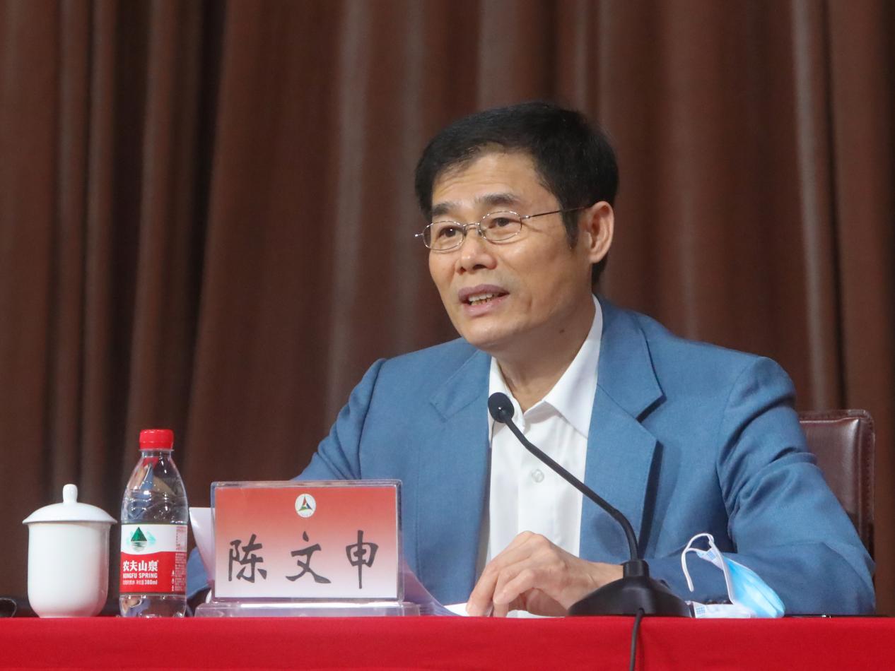 陈文申书记代表学校领导班子作述职报告,同时报告本年度干部选拔任用工作情况,通报“不忘初心、牢记使命”专题民主生活会情况,并进行个人述职。