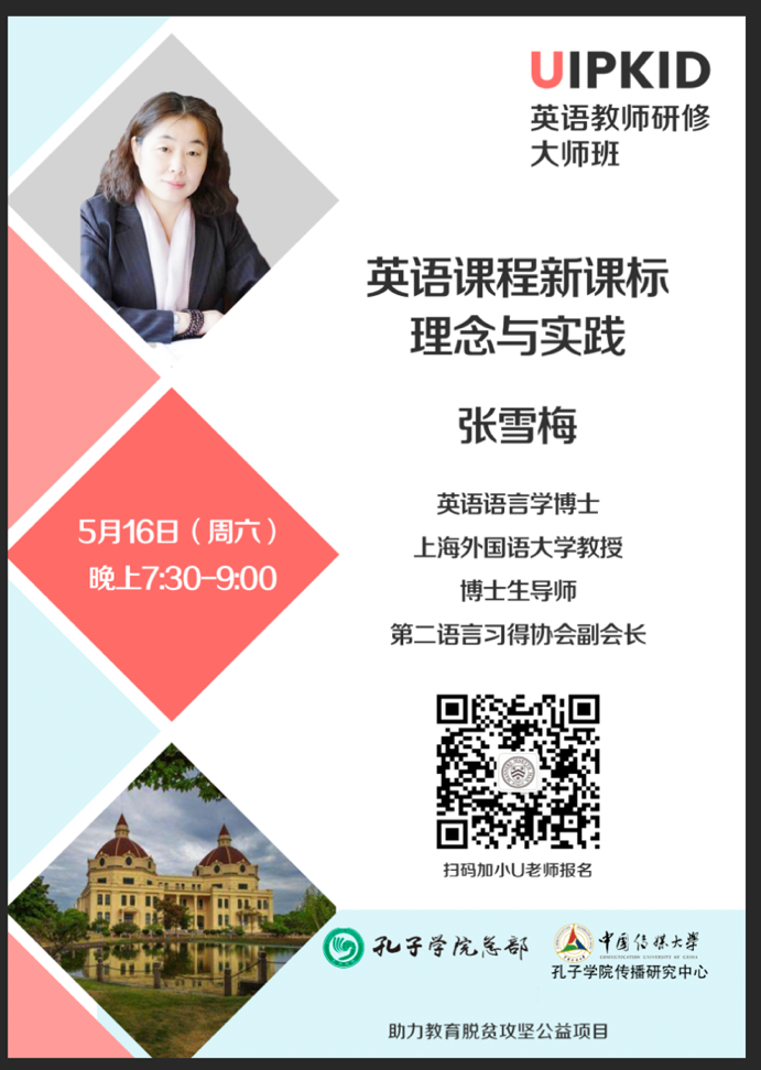 该项目由中国传媒大学孔子学院传播研究中心(挂靠政府与公共事务学院)具体实施。中心联合孔子学院总部,协调国内外专家资源,开展以培训贫困地区中小学英语教师为目标的英语教学研修大师班(UIPKID)项目。在中国传媒大学、北京外国语大学、上海外国语大学、北京师范大学等高校,美、加、英、澳、新等国孔子学院大力支持下,邀请多位国内外相关领域知名专家,免费为贫困地区线上授课。