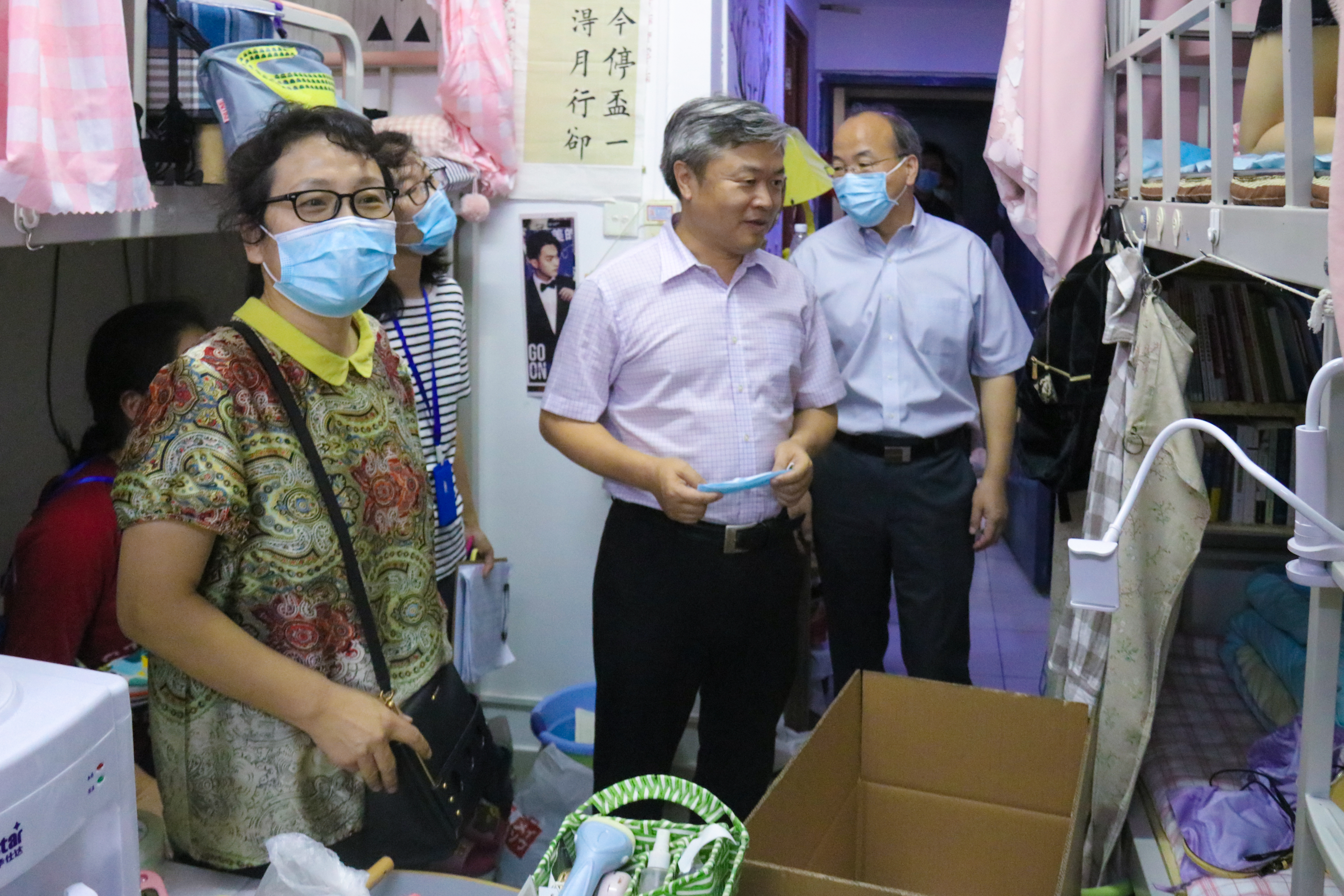(记者 王雷亭)7月17日中午,廖祥忠校长深入中蓝学生公寓宿舍,查看毕业生物品整理邮寄工作,看望慰问忙碌的教职员工。