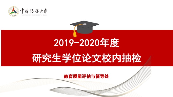 (通讯员 温暖)为落实研究生教育质量改革举措,全面加强研究生教育质量监控评估,7月13日,教育质量评估与督导处依据《中国传媒大学研究生学位论文抽检办法》,开展了首次2019-2020学年度研究生学位论文校内抽检。