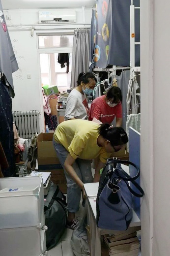 7月11日至7月13日,学院行李“云打包”志愿小分队共完成了20间宿舍,68名毕业生的行李整理打包工作。按照“以宿舍为单位进行打包”的工作要求,每个宿舍安排一个工作小组,设组长1名。工作小组负责宿舍所有学生行李整理、打包具体事宜,包括宿舍微信群的建立、与学生的前期沟通,落实好“一人一案”,“云整理”现场直播、完成行李打包、提交邮寄或行李暂存、贵重物品委托学院保管等工作。