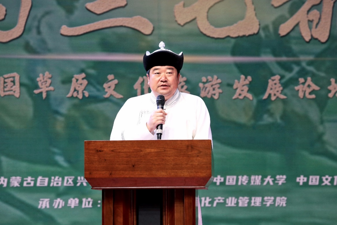 (通讯员 高明)8月11日,为助力脱贫攻坚,由科右前旗人民政府、中国传媒大学、中国文化产业协会共同主办的乌兰毛都中国草原文化旅游发展论坛,在科右前旗乌兰毛都苏木举办。文化和旅游部非物质文化遗产司副司长钟建波,文化和旅游部产业发展司二级巡视员赵建军,我校党委书记陈文申,副校长刘守训、李新军,校长助理王志,科右前旗旗长李振林等有关领导、专家学者和企业代表出席论坛。论坛开幕式由王志校长助理主持。