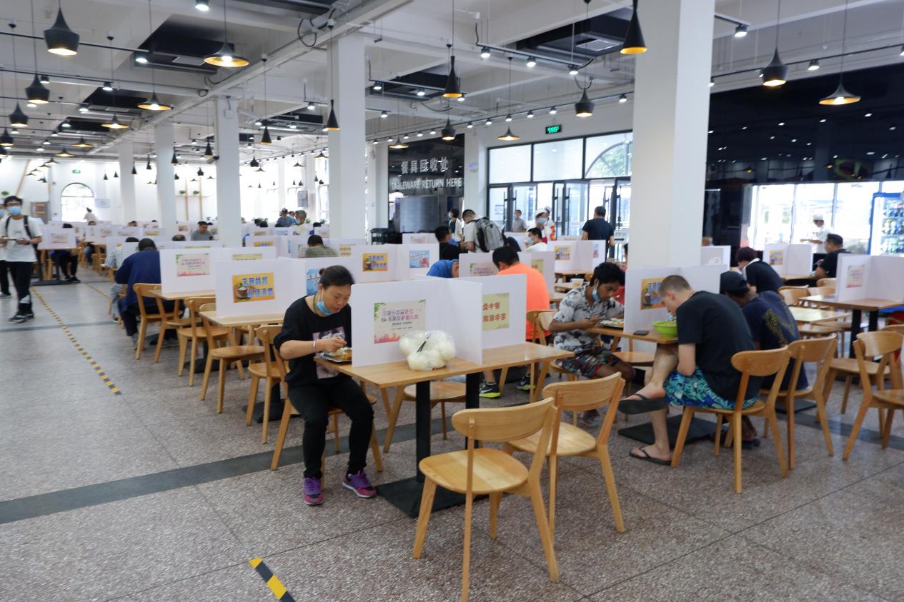 “跨越山川湖海,中传迎你到来”“亲爱的小白杨,欢迎回家”……在返校报到现场、主要道路、宿舍楼、餐厅等地摆放或悬挂着欢迎标语、条幅,气氛温馨。在窗明几净、焕然一新的餐厅,工作人员耐心地引导大家扫码登记,单向进出,使用流动水或免洗洗手液洗手、消毒,有序安心就餐。