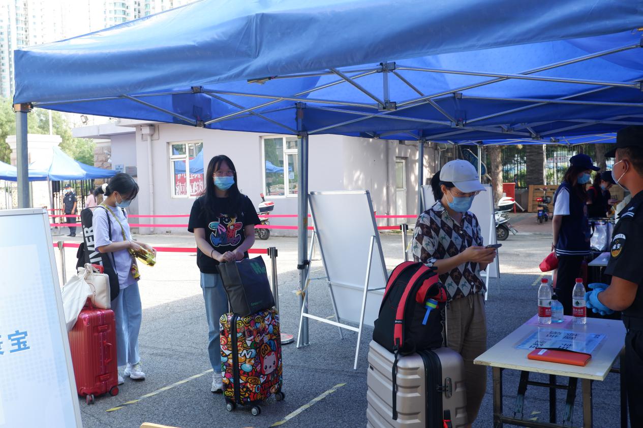 为帮助返校同学熟悉进校程序,顺利入住,志愿者们早早就位,协助搬运行李。经过与学校长达近8个月的“分离”,再次回到母校的怀抱,见到熟悉的辅导员、老师、同窗和宿管阿姨,同学们纷纷表示“很想念”“很激动”。