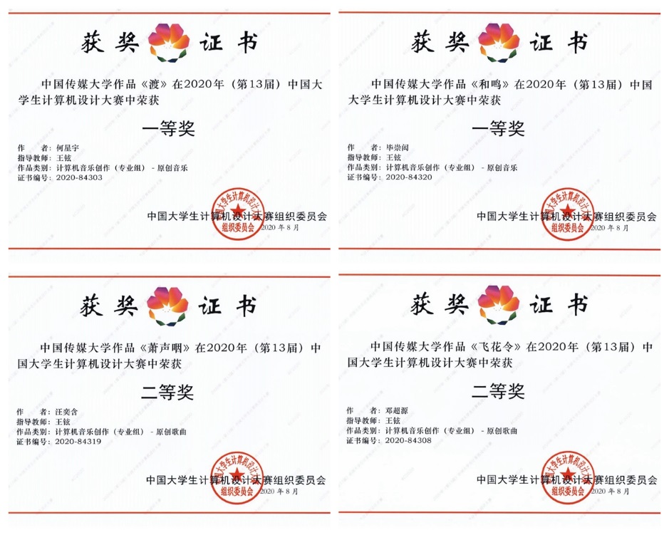 (通讯员 吉也)2020年8月,第十三届中国大学生计算机设计大赛计算机音乐类决赛在山东大学圆满落下帷幕。本次比赛中,中国传媒大学音乐与录音艺术学院再获佳绩,学生参赛作品荣获多项大奖。