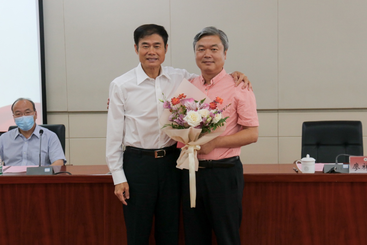 陈文申书记为教龄满30年的廖祥忠校长颁奖