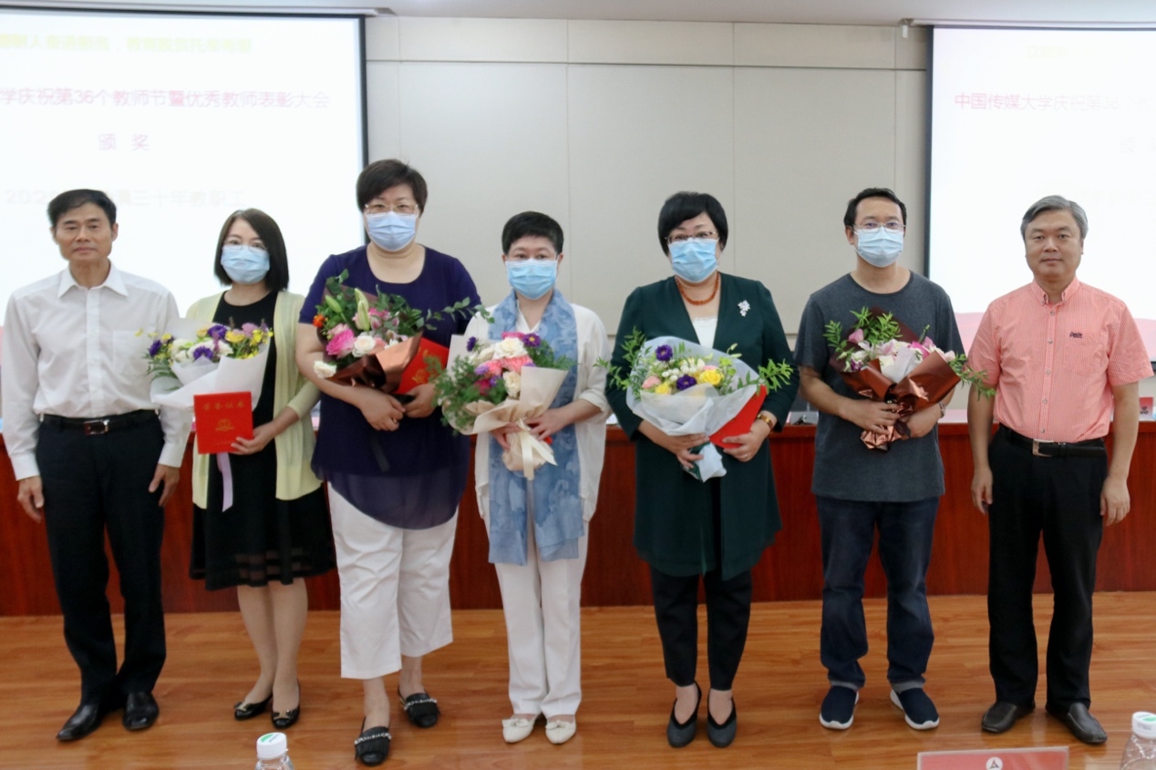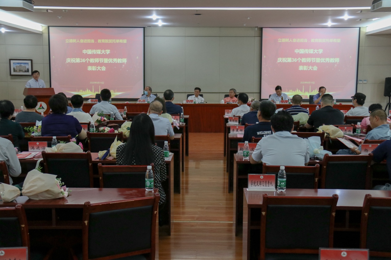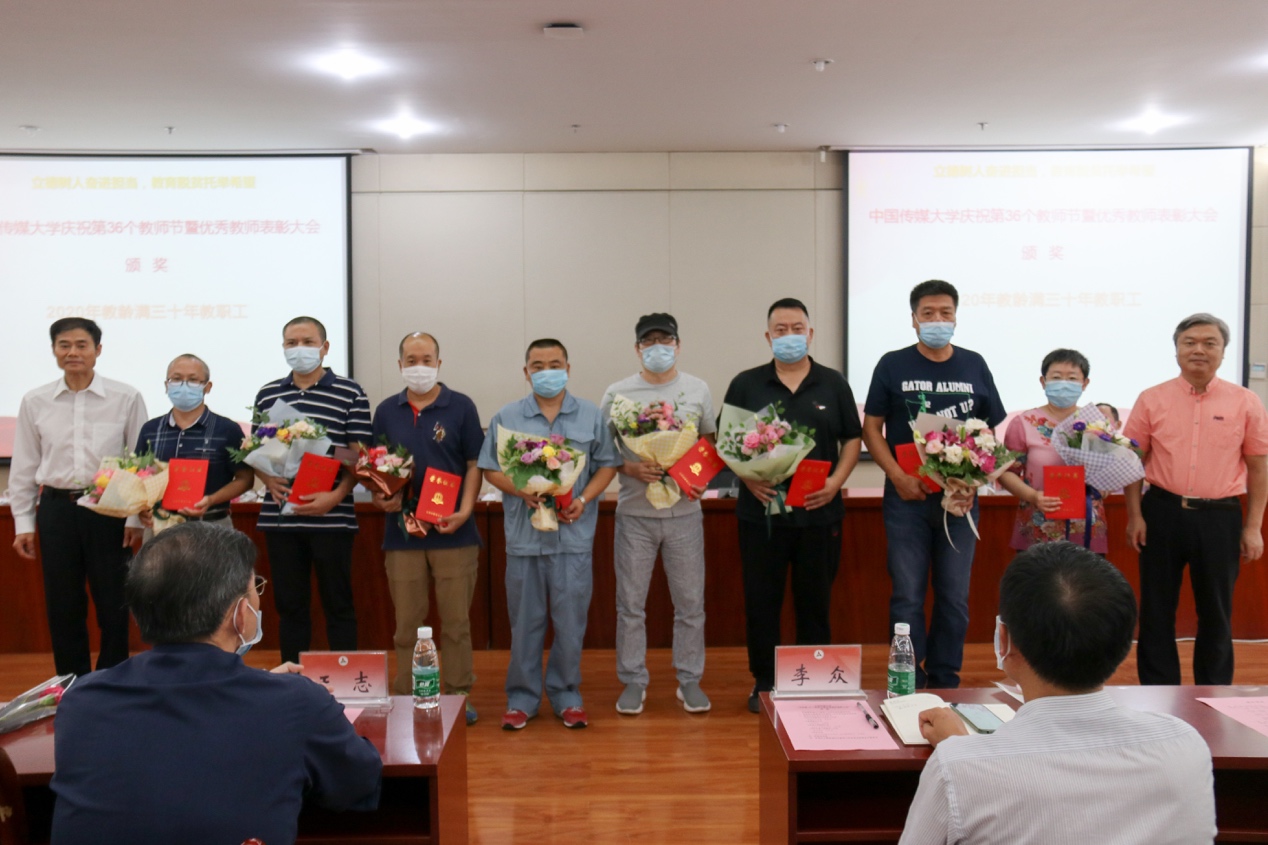 各学院党政主要领导、职能部门主要负责人,2020年教龄满30年教职工,受表彰人员,新入职教职工以及学生代表参加会议。会前,全体参会人员一起观看了扶贫工作专题片《中国传媒大学定点扶贫科右前旗大事记》以及为教师节精心准备的暖心小片《我想对您说》。