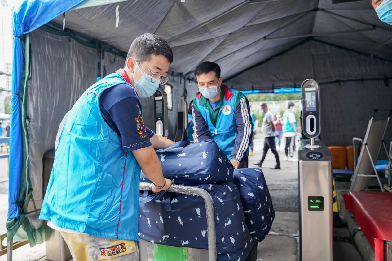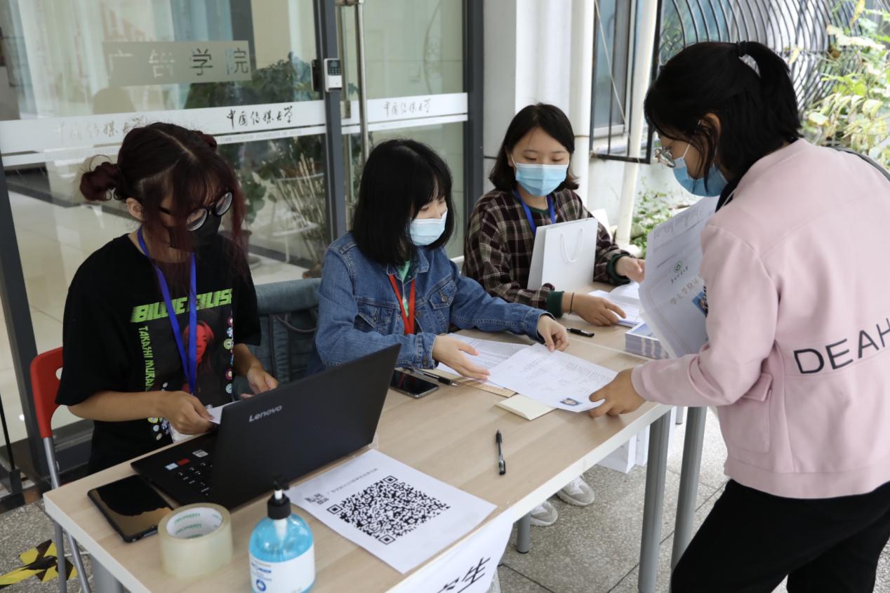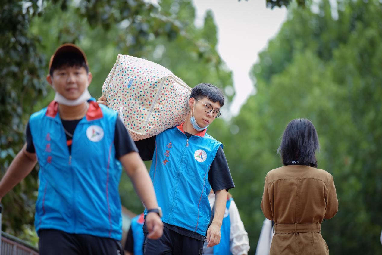 清晨六点三十分,校园里身着蓝色马甲的志愿者们开始了一天的工作,他们负责帮助新生搬运行李并引导办理报到流程。来自武汉的新生叶宝妹感慨道:“走进校门,就有志愿者接过行李,一直送到宿舍,真是‘一条龙服务’。”2019级公共关系专业的王一凡是500余名志愿者中的一员,他说:“从新生身上,我仿佛看到了去年的自己。而且还是在疫情防控的特殊时期,我更想尽自己的一份力去帮助他们。”