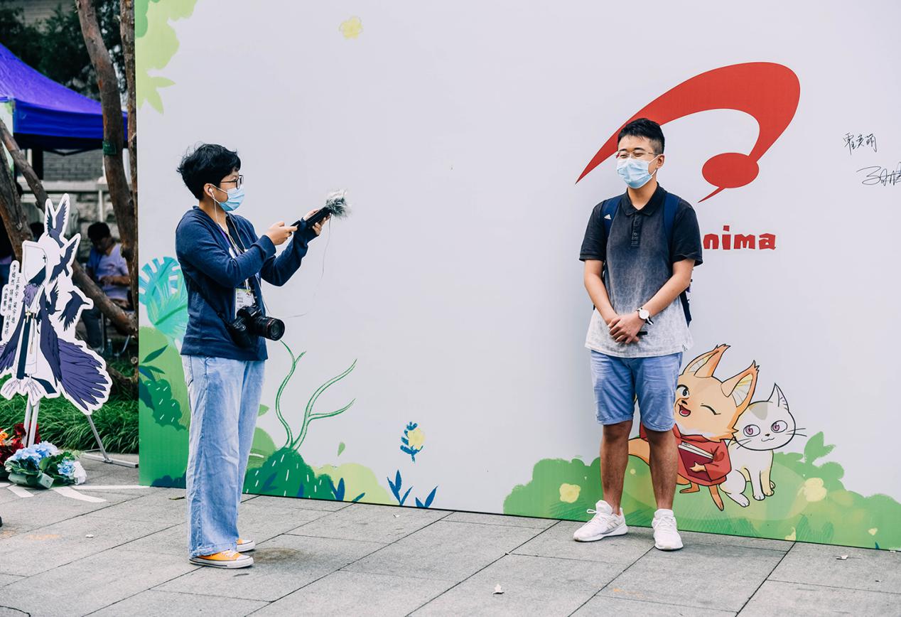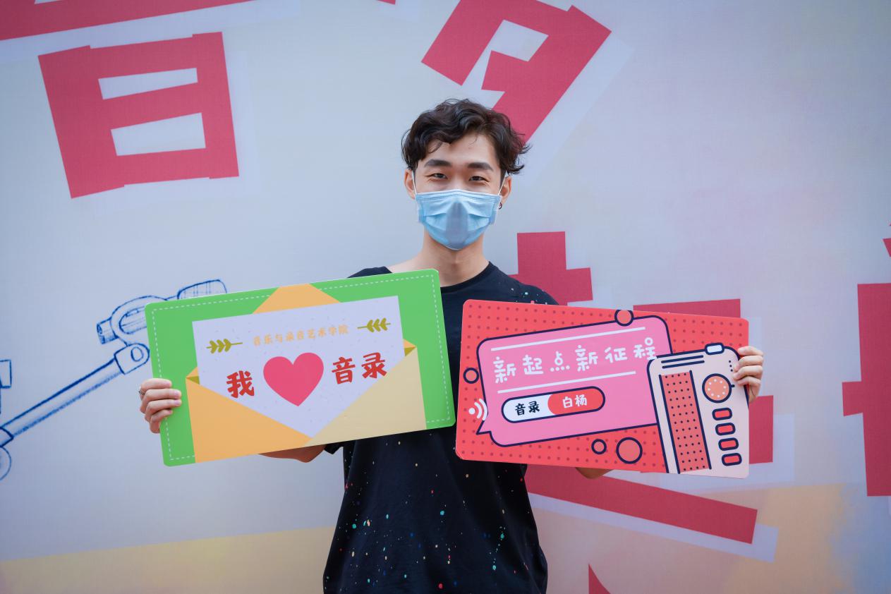 在音乐与录音艺术学院的迎新现场,播放着音录学子在抗疫期间自主创作的歌曲。师哥师姐们热情地为所有新生拍下“开学第一帧”,并用录音机录下大家的“开学第一声”,期待大家在中传的每一步都能掷地有声。