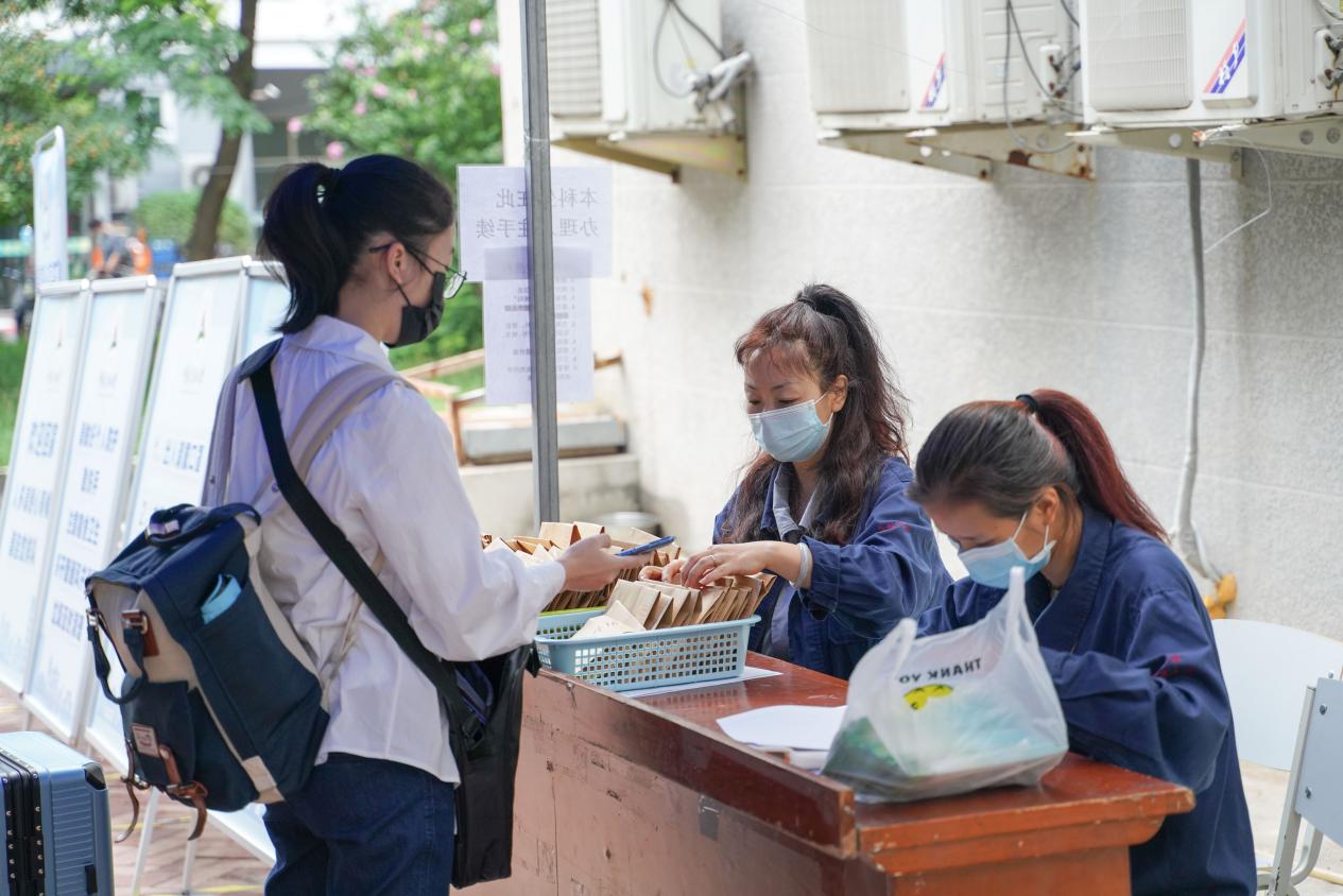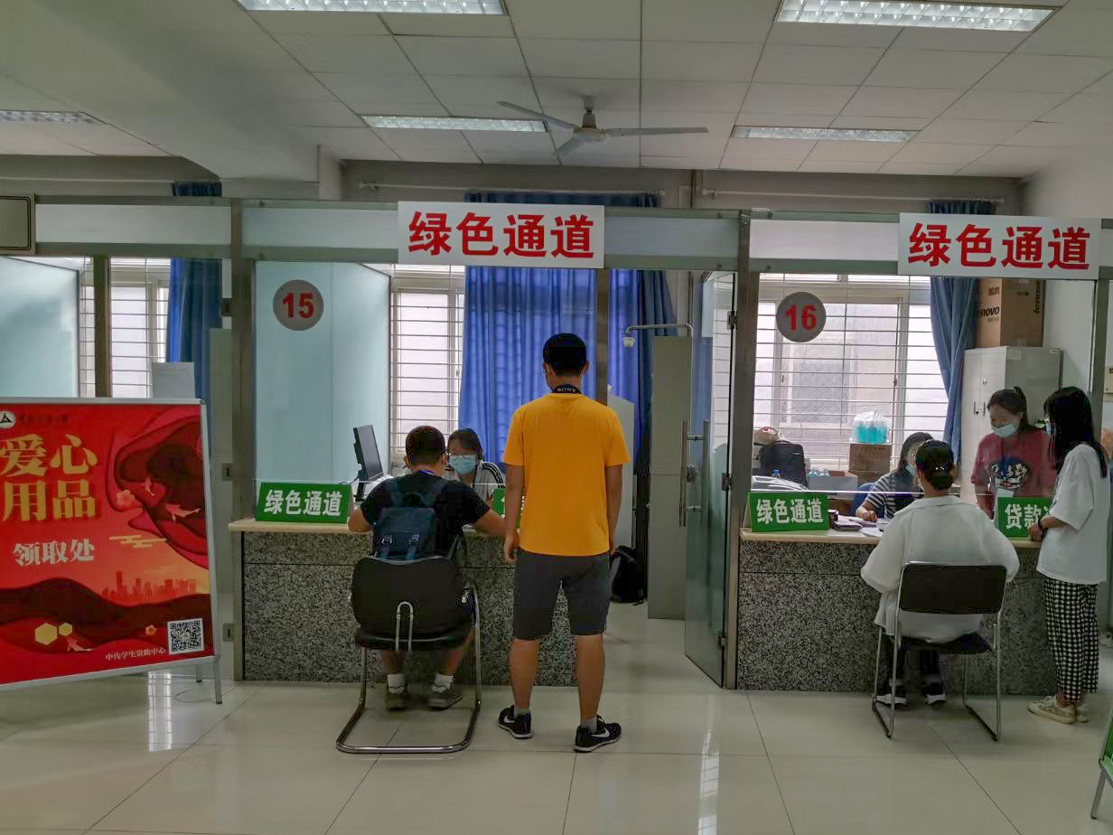 与往年不同的是,今年的“绿色通道”流程均在线上完成,新生只需前往44号楼1层学生服务大厅领取物资即可。来自江西省赣州市的新生谢燕英现场咨询了学生资助的相关事宜,他说:“学校非常贴心,准备了很多礼物,服务也很周到。感谢学校和师哥师姐们!”对于即将开始的大学生活,他充满期待,相信“这里是我梦想开始的地方”。