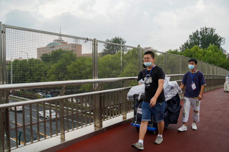 在“绿色通道”现场,来自中国传媒大学的学生资助志愿服务总队的师生热情帮助新生完成“绿色通道”线下流程。他们每天早上六点五十就开始忙碌在“绿色通道”迎新处,为新生解答各种资助问题、校园生活问题,为新生领路指引。在领取爱心被褥时,部分居住在梆子井公寓的女同学反馈被褥太沉,很难自己搬运回宿舍。志愿服务总队的男生自告奋勇,用小板车拉着被褥穿过校园、穿过天桥,不辞辛劳,汗水湿透了他们的衣衫。他们用自身的行动让每一位办理绿色通过的新生感受到了学校如家般的温暖与关爱。