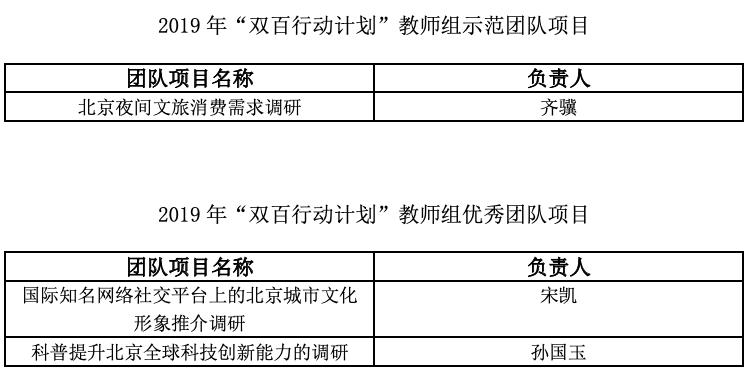 (记者 张旭)近日,北京市委教育工委和相关委局联合组织开展的北京高校师生服务首都“四个中心”建设“双百行动计划”2019年示范、优秀团队项目名单揭晓,我校3个教师团队取得了好成绩。