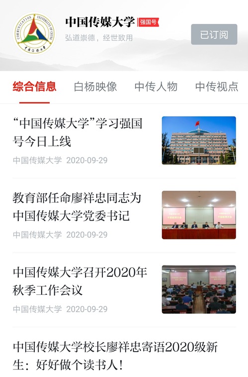 搜索“中国传媒大学”订阅