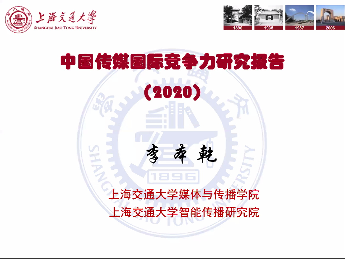上海交通大学李本乾教授针对2020中国传媒国际竞争力研究展开了阐述。该研究通过中国传媒产品和服务与全球187个国家和地区的传媒产业、全球75个国家和地区的传媒上市公司的各项数据对比,来分析中国传媒产业在国际市场中的竞争力。李本乾教授还为提升中国传媒国际竞争力提供了七条策略:资源开发战略、价值链生态战略、内容创新战略、融媒体战略、传媒企业提升战略、传媒人才战略和传媒体制改革。