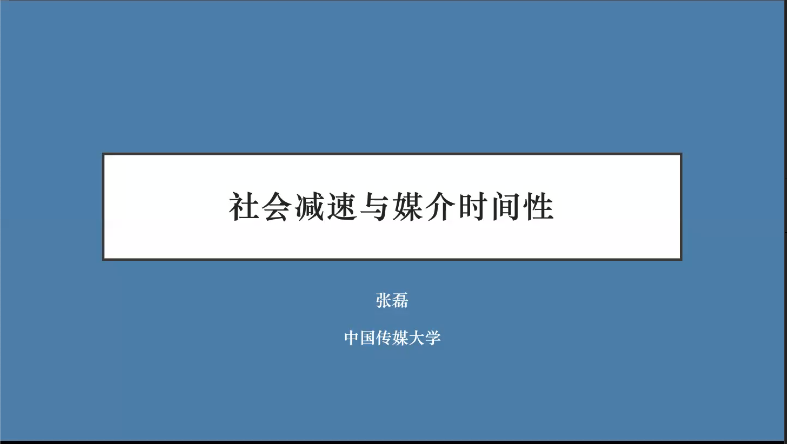 中国传媒大学张磊教授的演讲主题为《社会减速与媒介时间性》,结合罗萨的加速理论与疫情期间社会的隔离与封锁对“社会加速,社会减速”展开了探讨。时间的观念随着社会的进步产生了一些进化,由农业社会自然时间(农业社会)、时钟时间(工业社会)到现在的媒介时间(信息社会)。在媒介时间性概念上,“时间的权力”究竟归属何方?这需要基于政治经济分析后进行一个哲学的思考。