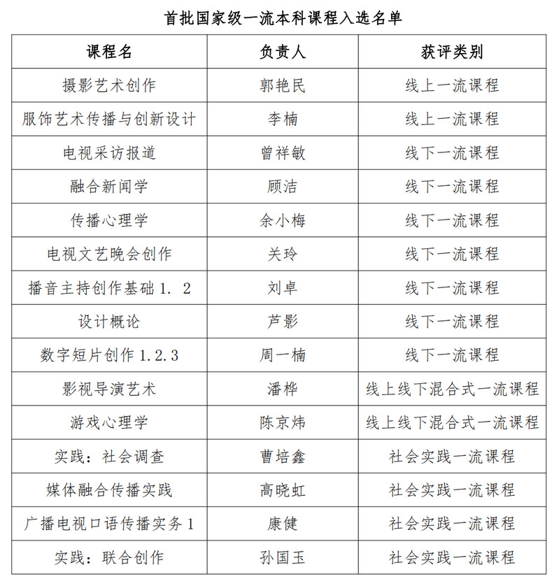(通讯员 丁舒珊)近日,教育部公示了首批国家级一流本科课程认定结果,来自全国600余所高校的3560门课程入选。我校共有15门课程入选,总数位列在京高校第7,居全国高校前10%。