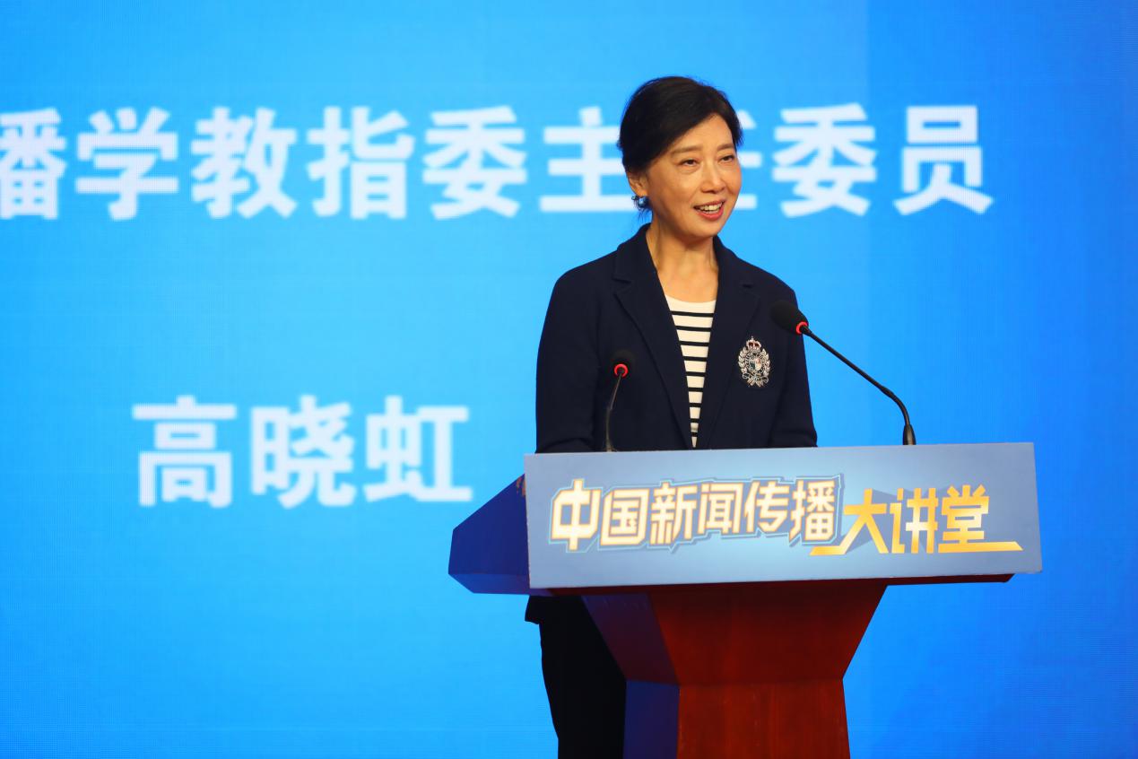 新闻传播学教指委主任委员高晓虹介绍了中国新闻传播大讲堂的建设情况,她表示大讲堂在我国新闻传播教育中是“第一次”尝试,具有开创性,是部校共建的新成果、新文科建设的新探索、理论与实践融合的新拓展、媒体融合传播的新尝试、立德树人的新课堂。大讲堂将利用现代视听技术与通讯网络,力争推动优质教学资源覆盖全国727所高校的1391个新闻传播学类专业点。