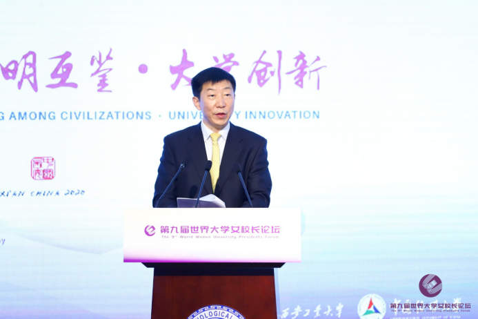 赵刚在简要介绍陕西省教育科技文化发展成就后表示,妇女是人类文明的开创者、社会进步的推动者,在各行各业书写着不平凡的成就。面对百年未有之大变局,我们应当顺应“全球共情”,增进人类命运共同体意识,推动政府、国际组织、商协会等组织间开展政策和经验交流,培养多元化的伙伴关系。我们应当推动“文明互鉴”,充分发挥教育在人文交流方面的积极作用,建立完善教育合作交流新机制,让各种文明美人之美,各美其美,美美与共。我们应当致力“大学创新”,努力把握第四次工业革命的时代机遇,发挥高校的创新源头作用,推动自然科学领域的新发现、技术领域的新成果、社会交流的新方式不断涌现。