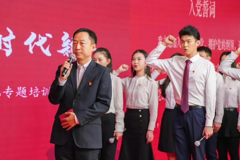 学校党委常委、组织部部长李众带领全体师生党员重温入党誓词,进一步坚定初心,勇担使命。
