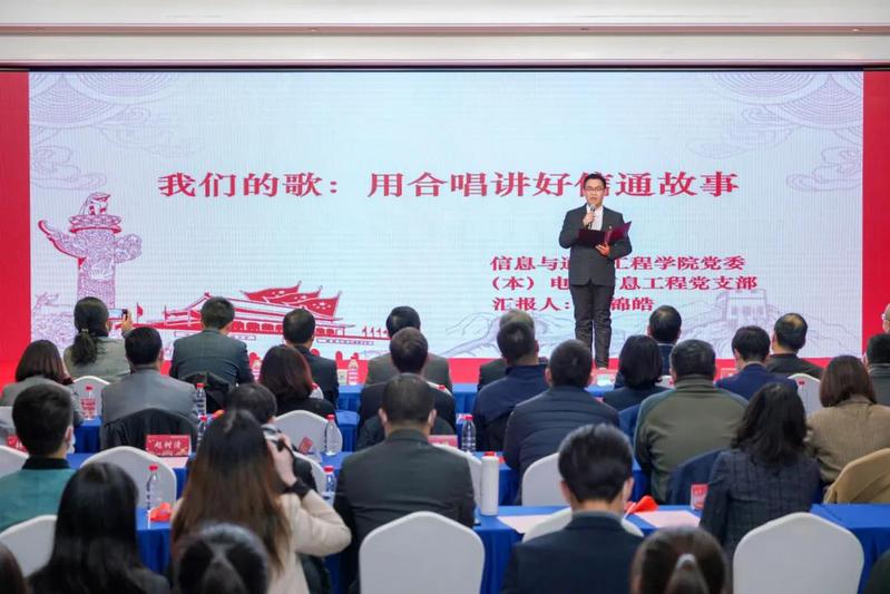 活动现场,师生共唱一首歌,祝福伟大祖国,在歌声中传递青年党员的责任担当,坚定忠诚基因。全场师生共同观看《力量——中国传媒大学学生党支部建设成果访谈》。