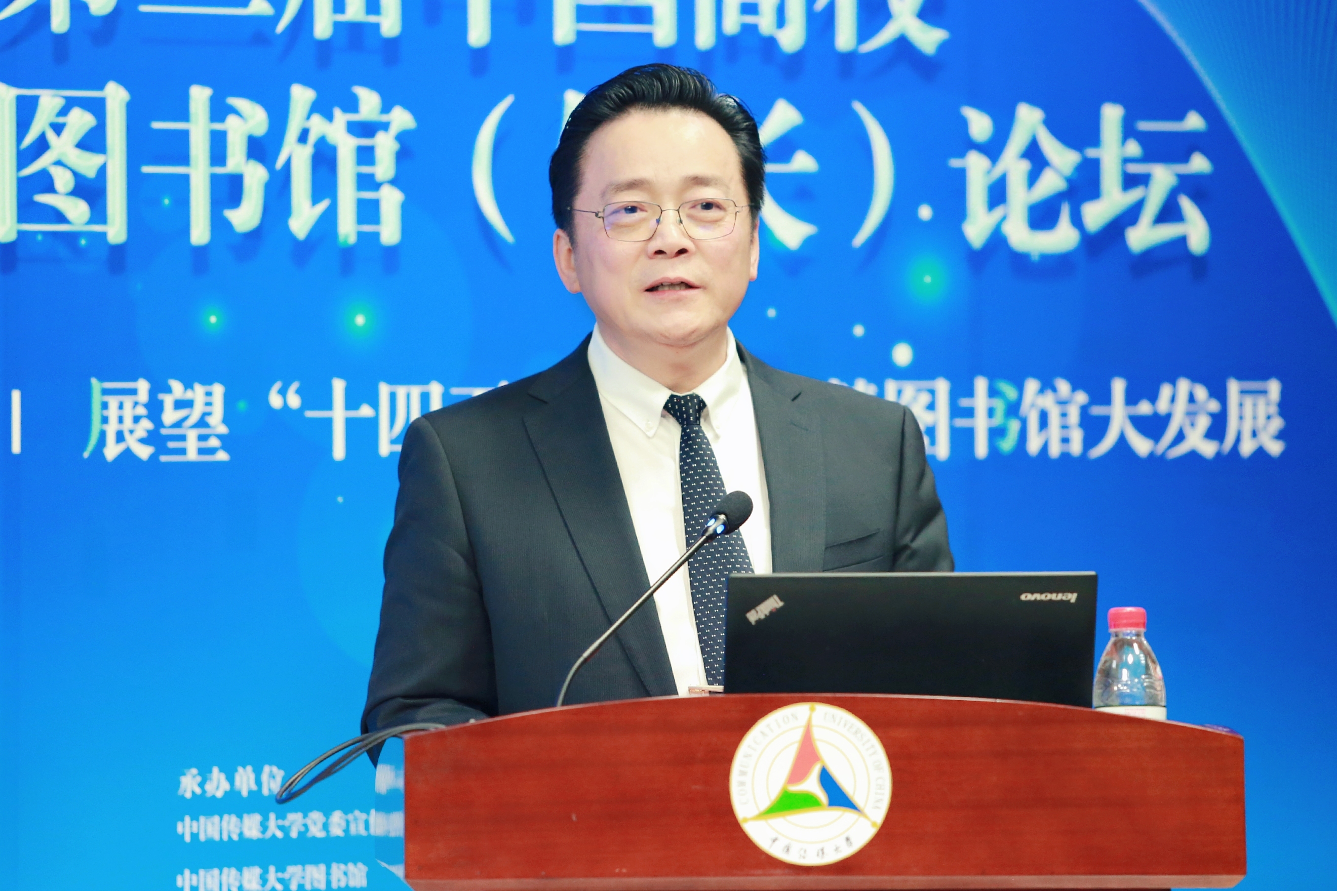 国家图书馆馆长、中国图书馆学会理事长饶权,教育部教育装备研究与发展中心副主任赵宪志、文科教育装备处长张瑜,中国传媒大学党委副书记姜绪范、校长助理王志、党委宣传部长杨懿等领导嘉宾出席论坛开幕式。中国传媒大学图书馆、传媒博物馆、校史馆馆长潘力主持开幕式。
