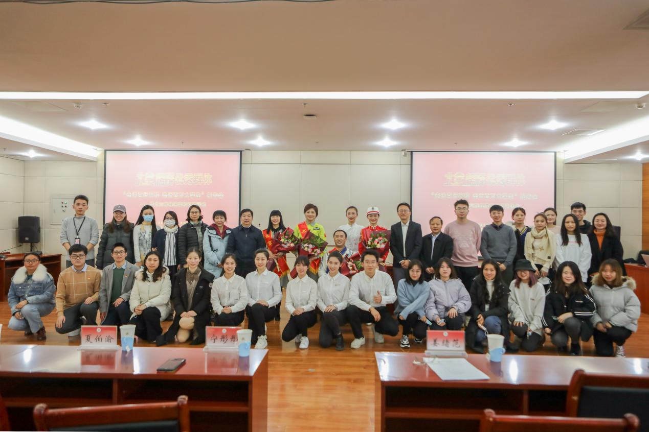 报告会结束后,学生代表向报告团成员献上鲜花,表达对北京榜样的敬意与祝福,师生们也上台与榜样合影留念。