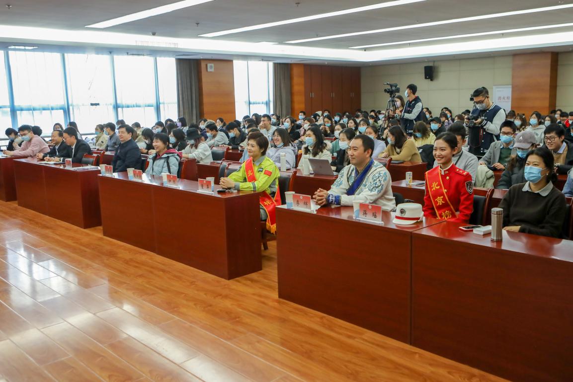 (记者 李晨雨 王雷亭 摄影 王雷亭 余蓉茜 朱皓月)12月3日上午,北京榜样优秀群体“走进百所高校 走近百万大学生”报告会在我校明德报告厅举行。报告会由北京市委宣传部、首都精神文明办、北京市委教育工委和北京市委讲师团主办,中国传媒大学承办。北京市委宣传部精神文明宣教处二级调研员宁彤彤,校党委副书记姜绪范,党委宣传部部长、融媒体中心主任杨懿,党委宣传部副部长、融媒体中心副主任王维家,学生工作部副部长张芊和来自各学院的200余名师生代表共同听取了报告。