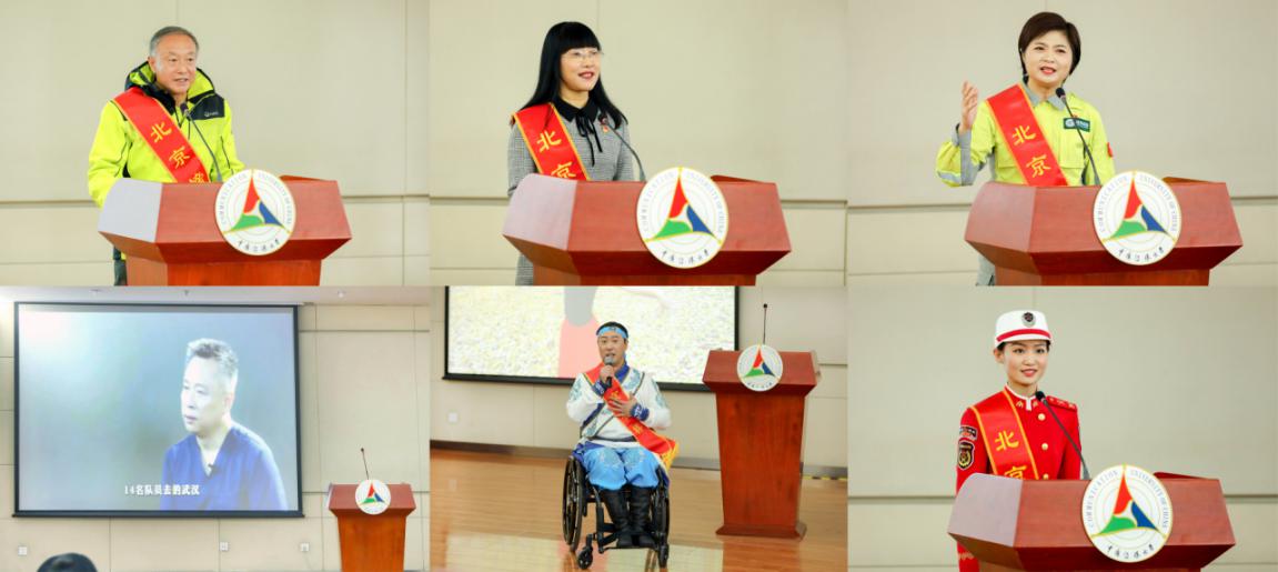 来校宣讲的“北京榜样”,有勇攀高峰的无腿登山家夏伯渝,有疫情期间默默守护居民健康的社区党支部书记伊然,有用爱托起生命绿舟的应急救援者董萍,有战“疫”期间主动请缨驰援武汉的急诊科医生唐子人,有用舞蹈传递爱与自信的轮椅上的舞者李辉,还有与祖国心连心的学子蒋瑶。