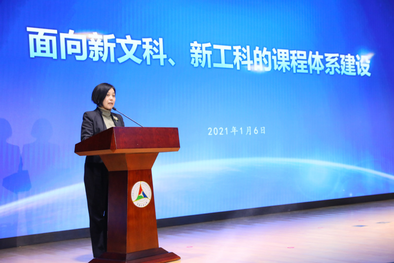 教务处贺小飞副处长从我校课程建设基本情况出发,解读了国家对高校课程建设的新要求新导向,并详细介绍了学校已经出台和即将出台的一系列新举措。她认为,新工科、新文科、新农科、新医科的核心要义就是交叉融合,学以致用。交叉融合落实到课程上,不仅仅是课程内容的交叉和融合,也涉及到人之间的交流与互动,这对我们的课程内容以及传统的授课模式都是一个挑战;而学以致用就是要用交叉融合产生的新方法来解决现实问题。