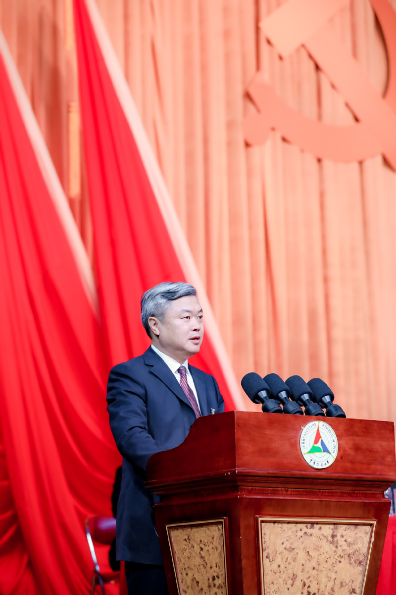 按照疫情防控要求,大会以线下线上方式举行。党委书记、校长廖祥忠,党委副书记姜绪范,党委副书记、纪委书记王达品,副校长刘守训、李新军、张树庭、段鹏及主席团其他成员(按姓氏笔画排序)丁俊杰、王志、王晖、王琳、王晓红、王晓丽、叶菁、刘灵、李伟、李众、李增瑞、杨懿、张海、张绍华、张根兴、陆佳怡、庞亮、郑维林、战琦、徐红梅、郭婧娜、董关鹏、程爱晶、曾祥敏、蓝旭在主席台就坐。