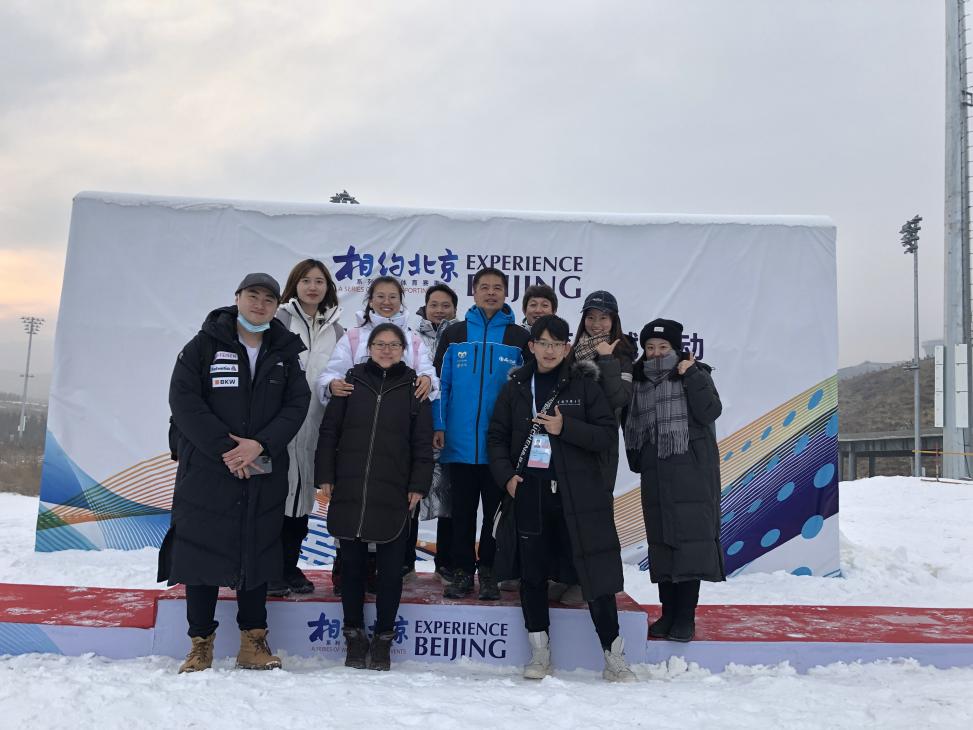 国家跳台滑雪中心承担着北欧两项(跳台滑雪)比赛。我校学子程琳、姜言、仲言、高昱诚、刘卓在体院展示经理杨晓轩等老师的带领下,以国家跳台滑雪中心绚丽灯光为依托开展双语播报解说及现场音乐秀活动,极具创新性的展示项目为美丽耀眼的“雪如意”竞技现场锦上添花。