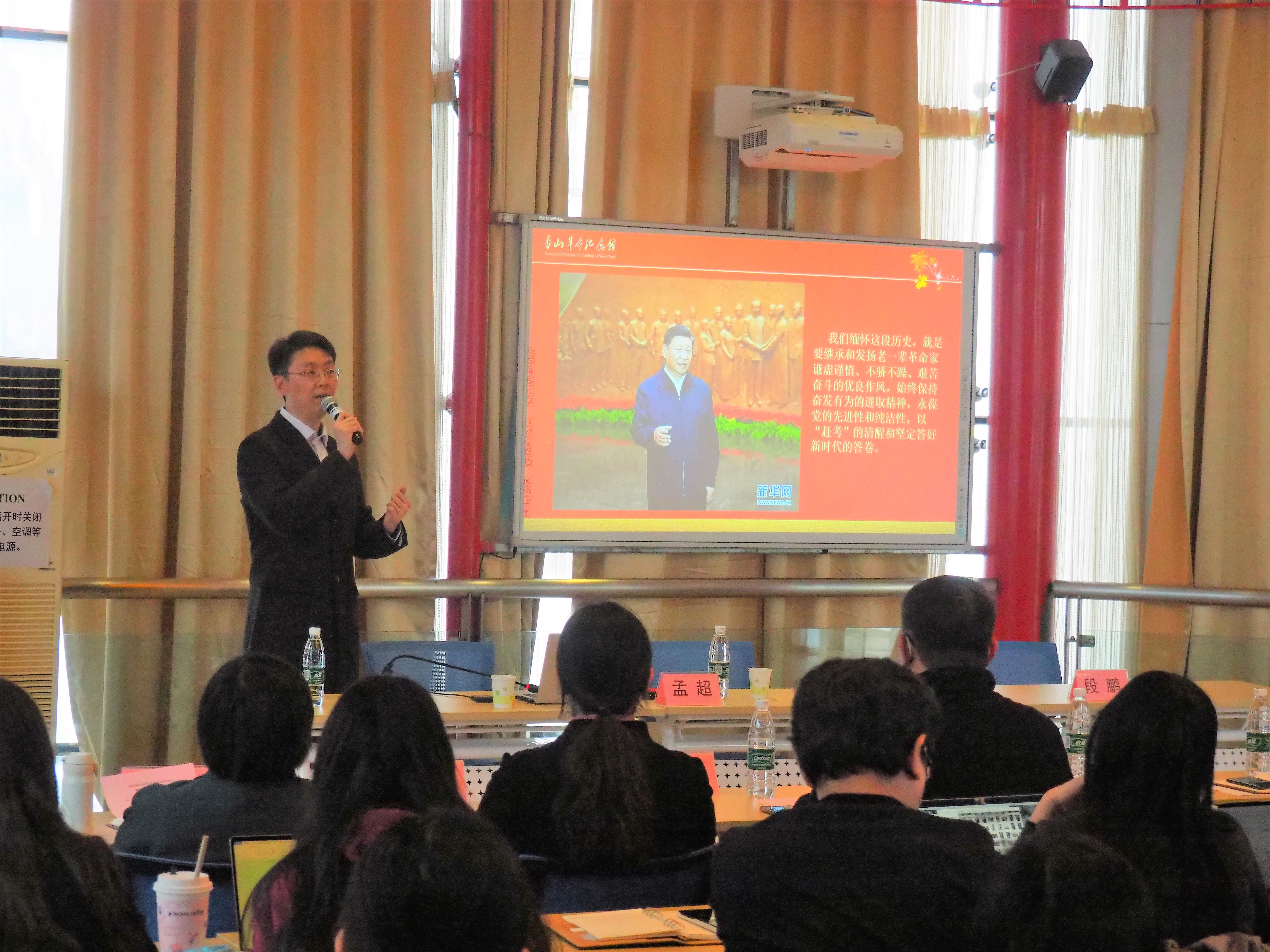 段鹏副校长在致辞中指出,中共中央进驻香山后指挥了举世闻名的渡江战役,吹响了解放全中国的进军号角;毛泽东同志发表了《论人民民主专政》,为新中国奠定治理体系与政策基础。段鹏副校长强调,北京香山被誉为中国共产党人进京“赶考”的首站,回顾这段历史,有助于我们思考“中国共产党为什么能”“中国特色社会主义为什么好”等核心命题。国传和海南两院组织的首场党史学习教育讲座,以中共中央在香山为主题,高度契合党史学习教育的目标要求,可谓“正当其时”。段鹏副校长希望两个学院能够深刻理解廖祥忠书记在我校“党史学习教育动员大会”上提出的目标要求,认真思考如何“充分依托学科特色、资源、平台,精心设计‘自选动作’,打造学校精品、一院一品、支部多品”,希望两院师生能在学习党史的过程中以信仰之光照亮前行之路,为开创国际办学新局面,实现我校“中国特色世界一流传媒大学”奋斗目标贡献智慧和价值。