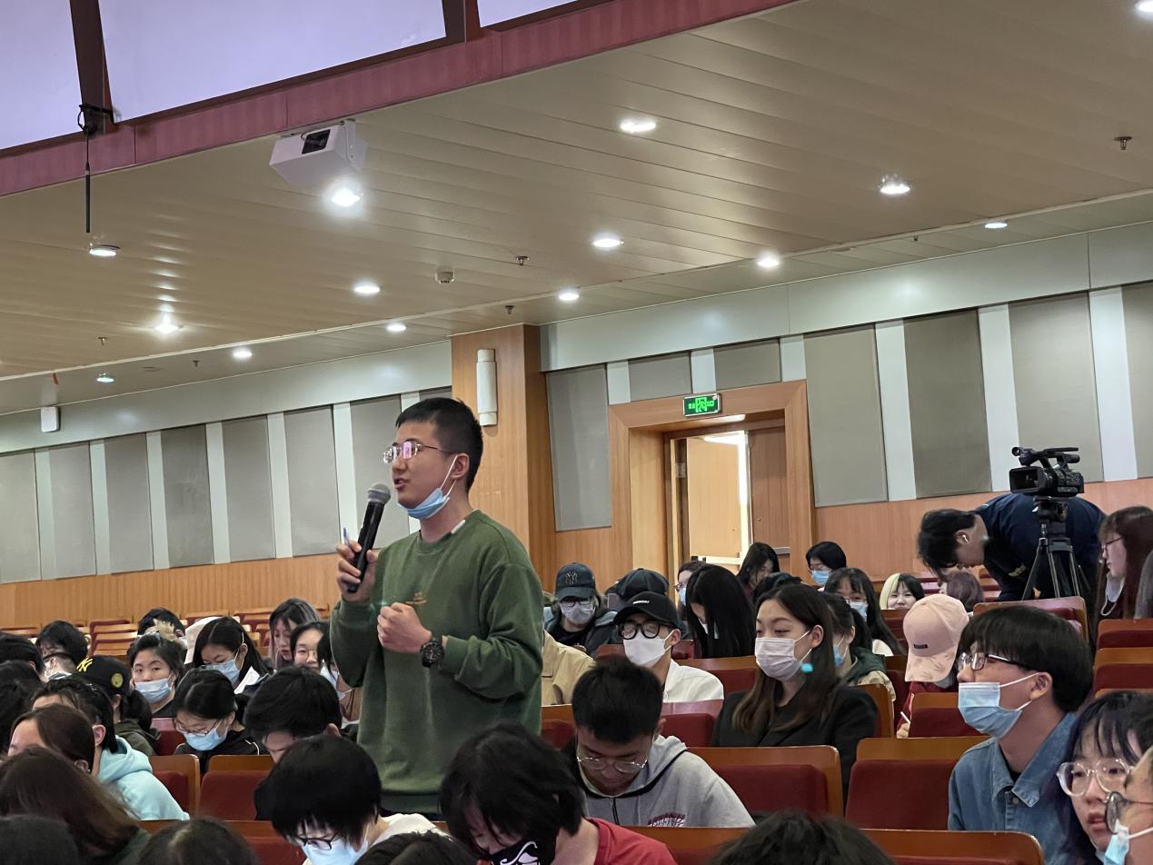 来自我校2020级的900余名本科学生在现场参加了讲座,并在讲座结束后与贾教授展开了热烈互动。来自2020级数字媒体技术(游戏设计技术方向)的孙睦恒等5位同学踊跃发言,围绕联合国维和行动、中国崛起与联合国改革、美国单边主义对全球治理影响等当前国际形势热点话题进行提问。贾教授深入浅出、妙语连珠的精彩回应赢得了全场师生热烈的掌声。