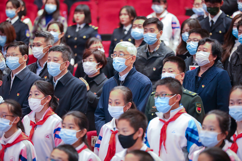 (摄影 王雷亭 申皓文 常能嘉)为庆祝党的百年华诞,丰富党史学习教育的形式载体,更好地教育引导全国大中小学组织开展缅怀先烈活动,4月2日,由中宣部《党建》杂志社和中国传媒大学主办,北京市八一学校、北京市八一学校附属玉泉中学承办,中央党史和文献研究院第七研究部协办的缅怀先烈暨“百年先锋”移动听发布会在北京市八一学校隆重举行。