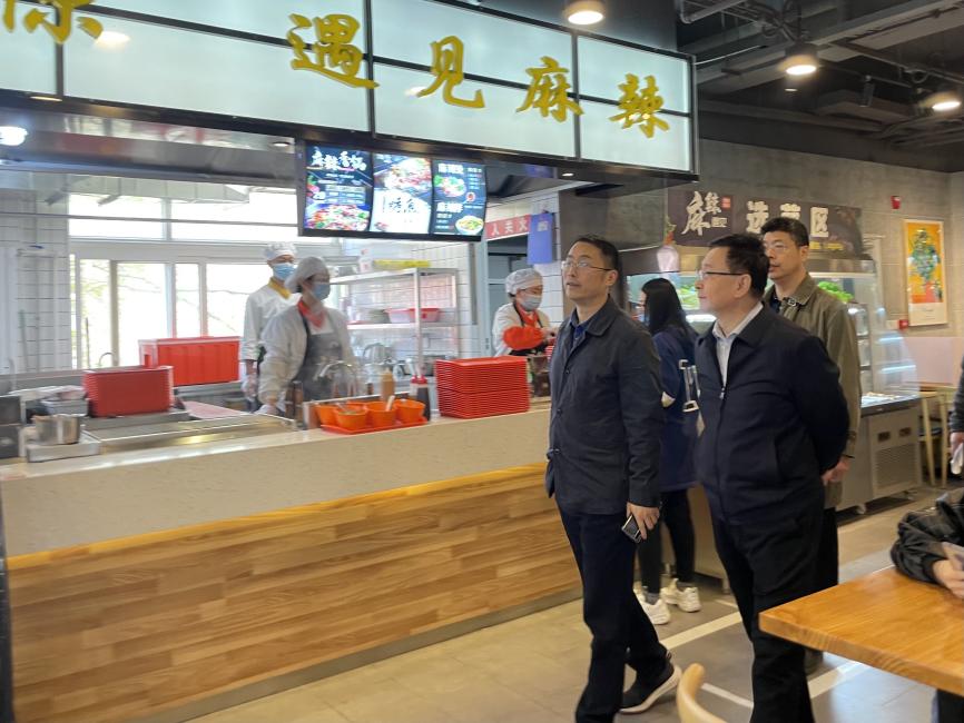 参观过后,丁浩副校长一行对我校后勤信息化建设情况进行了考察,双方围绕公寓管理、食堂管理、节能技术等交换了意见。