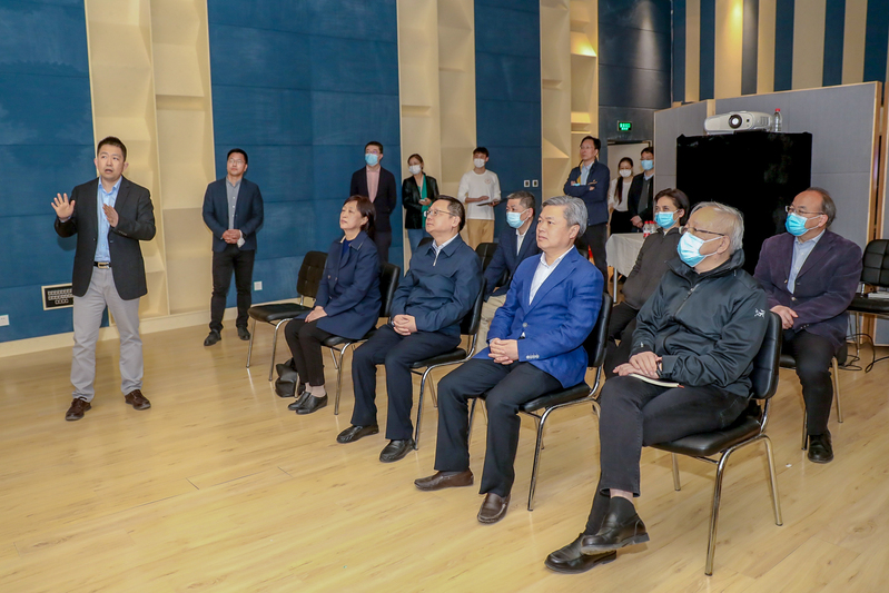 随后,朱咏雷副局长一行来到中传新地标——国重大楼,参观调研了媒体融合与传播国家重点实验室,听取了媒体融合与传播国家重点实验室首席科学家吕锐教授的汇报。朱咏雷副局长对中国传媒大学媒体融合与传播国家重点实验室在相关领域的科学研究和成果表示高度肯定。他表示,希望中国传媒大学主动对接国家重大需求,发挥媒体融合与传播国家重点实验室的科技创新引领作用,为媒体融合发展与智慧广电的扎实推进提供坚实支撑。国家广播电视总局也将给予中传支持并展开合作,形成产学研用对接机制。