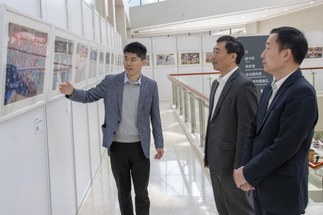 教育部体育卫生与艺术教育司副司长、一级巡视员刘培俊,综合处处长高军;北京印刷学院设计艺术学院党委书记史民峰;中国青年报社运营中心新闻事业部副主任亓洪良来校参观展览。中国传媒大学党委副书记李众、党政办公室主任张绍华、学生工作部副部长兼武装部部长齐金贵、传媒教育基金会秘书处副秘书长杨鹏、传媒博物馆副馆长吴志勇、校史馆副馆长高作志、融媒体中心副主任袁冶一同参观。