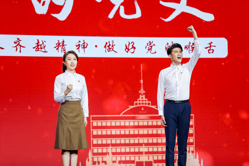 主题党课结合学校传媒专业特色,围绕“声音中的党史”主题,通过回望、致敬、传承三个篇章,以播放新中国广播事业的奠基人之一、中国共产党优秀播音员齐越老师的播音片段,结合党史故事讲述、现场访谈、视频连线、互动交流等方式,引导师生学习宣传党史,传承齐越精神,坚定传媒理想,做好党的喉舌。