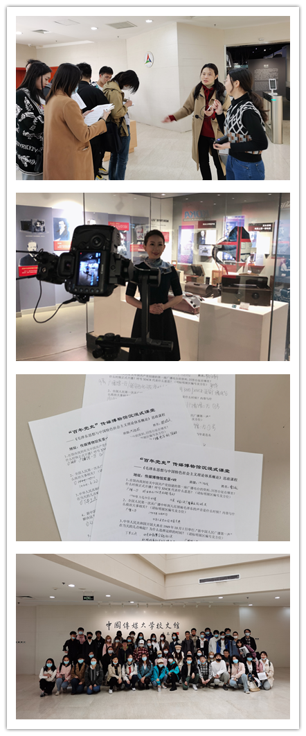 (通讯员 杨倩)日前,由中国化马克思主义教研部承担的《毛泽东思想和中国特色社会主义理论体系概论》课程(以下简称“《概论》课”)第一轮“党史学习教育专题沉浸课堂”教学改革实践顺利收官。从3月29日到4月1日,来自新闻学院、广告学院、戏剧影视学院、播音主持艺术学院、动画与数字艺术学院约400名2019级同学们走出教室,到传媒博物馆、校史馆开展了以“红色传媒史”为主题内容的思政课学习。
