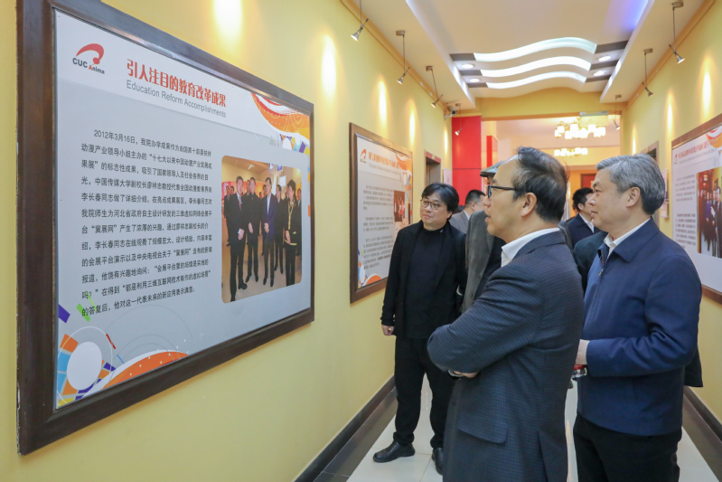 金一斌书记首先来到中国传媒大学校史馆、传媒博物馆,详细了解我校的办学历史、办学成就、办学理念和未来发展愿景。随后,金一斌书记来到动画与数字艺术学院,参观动漫博物馆、电竞实验室、VR实验室并观看师生创作的作品。金一斌书记对动画与数字艺术学院“人文为体、科技为用、艺术为法”的发展理念十分赞赏,他表示,动画与数字艺术学院在2006年就以跨学科专业发展的超前理念为引领,逐渐形成“跨媒体、科学与艺术相融合”的特色与优势,这是非常有远见的。参观结束后,双方进行了座谈交流。座谈会由动画与数字艺术学院院长黄心渊主持。